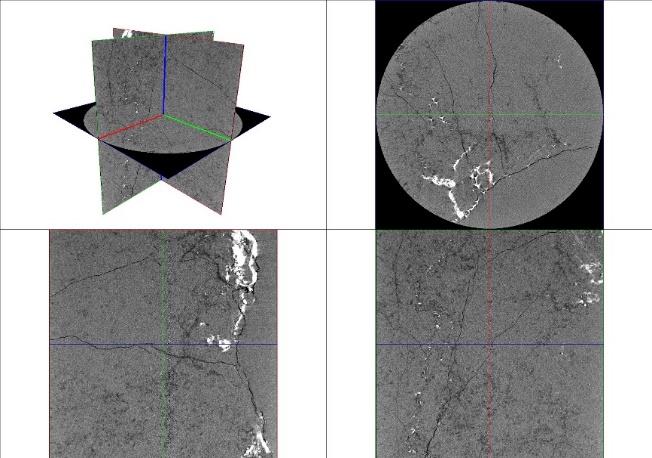 微米CT扫描实验室 一、实验室简介 本实验室隶属于伟德国际1949官网实验中心。主要功能是:岩石微观结构计算机断层扫描图像采集。实验室位于综合实验楼B106。 二、仪器设备 微纳米双射线管岩心CT扫描系统 仪器设备(型号):微纳米双射线管CT扫描系统V|Tome|X S180 & 240 品 牌:德国 GE 三、主要参数 (一)微纳米双射线管CT扫描系统 微纳米双射线管CT扫描系统由射线管、样品转台和探测器三大核心部分构成;根据样品尺寸调整扫描电压、电流、扫描张数、暴光时间等参数来完成样品测试。 表1. 微纳米CT基本性能参数 参数 测试范围 样品大小 1-260mm(样品直径) 扫描电压 微米管:10-240 kV 扫描电流 微米管:5-2800µA 扫描张数 1400-1800 暴光时间 500-2000ms (四)成果介绍 对扫描图像进行重构后,得到微样本三维灰度图像。 由于CT图像的灰度值反映的是岩石内部物质的相对密度,因此CT图像中明亮的部分认为是高密度物质,而深黑部分则认为是孔隙结构。通过ImageJ、AVIZO等软件对灰度图像进行区域选取、降噪处理,将图像分割与后处理可提取出孔隙结构模型、孔隙度、孔隙半径、喉道半径、配位数等参数。 某样品微米CT扫描图像 某样品微米CT扫描剖面图(三维切片,俯视图、XZ方向、YX方向) 某样品二值分割图像(黑色-孔隙;白色-颗粒) 某样品三维孔隙网络模型 某样品孔喉结构特征 四、实验室责任人 韩登林 联系电话:18601309981 五、实验预约流程 需与实验室责任人确定样品类型、数量、测试时间后,下载填写“分析测试申请表”,在开展实验当天提交纸质申请表。样品要求:圆柱状岩石样品,规格2.5cm(φ)*4cm(L)。