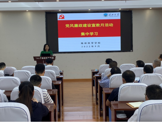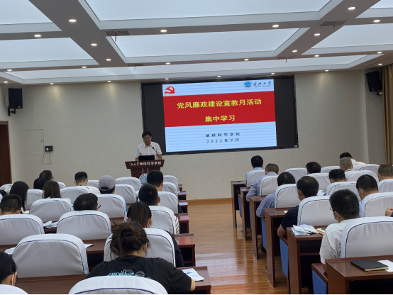 (通讯员潘志远)为弘扬清廉守正担当实干之风,赋能高质高效清廉地科建设,推进党风廉政宣传月活动深入开展,9月1日下午,地科学院全体教职工在石油科技大楼C301会议室进行党风廉政建设宣教月活动集中学习,会议由党委书记杨全辉主持。