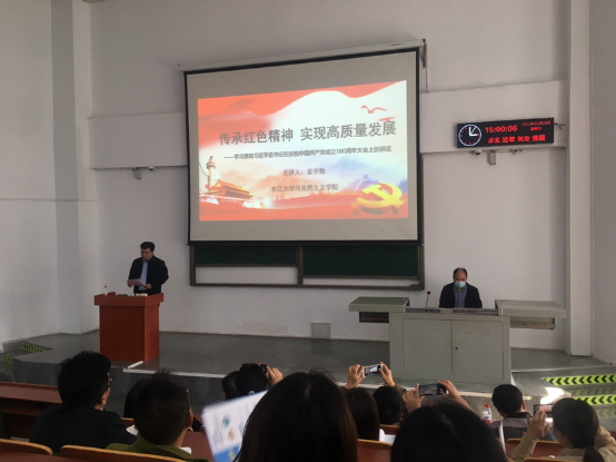 为深入学习贯彻习近平总书记“七一”重要讲话精神,推动党史学习教育走深走实,10月28日下午3点10分,公司组织全体教职工和员工党员参加“学习贯彻习近平总书记“七一”重要讲话精神”主题宣讲会。此次宣讲会由伟德国际1949官网马克思主义学院经理姜学勤教授主讲,主题为“传承红色精神、实现高质量发展-学习贯彻习近平总书记在庆祝中国共产党成立100周年大会上的讲话”。