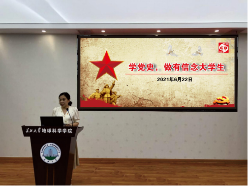 为庆祝中国共产党百年华诞,进一步加强员工党支部的建设,开展党史教育,6月22日晚7点,公司党委副书记任倩在石油科技大楼C301,以“学党史,做有信念老员工”为题,给学院员工党支部讲授党课。