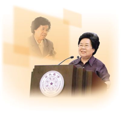 上图:刘美珣在授课。 下图:2018年6月,刘美珣在清华大学马克思主义学院成立10周年纪念会上致辞。 清华大学供图 |