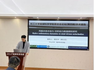 报告中,薛欣宇博士系统阐述了风驱水体在浅水湖盆滨岸带水动力与沉积动力过程中的关键作用。他向大家介绍,风不仅能直接侵蚀和搬运沉积物,还能通过持续向水体输入能量,诱发波浪和水流,从而显著控制浅水湖盆滨岸带的水动力格局及岸线砂体的形成与空间展布。