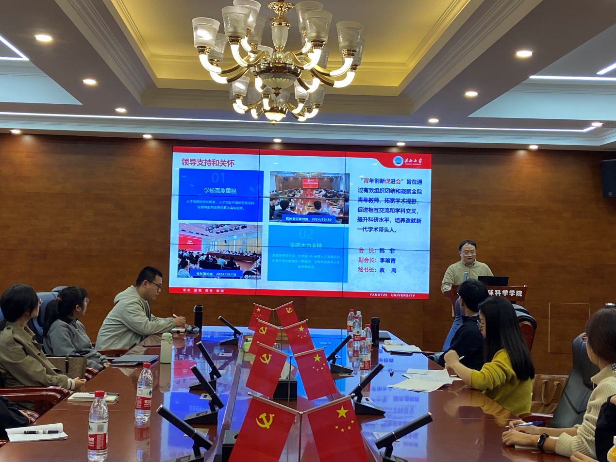 韩非首先介绍了“地科学院青促会”的成立背景及初衷,“青促会”旨在通过有效组织和支持,团结、凝聚全院青年教师,拓宽学术视野,促进相互交流和学科交叉,提升科研水平,培养造就新一代学术带头人。韩非同时对学院领导大力支持与悉心关怀青年人才表达了诚挚感谢。