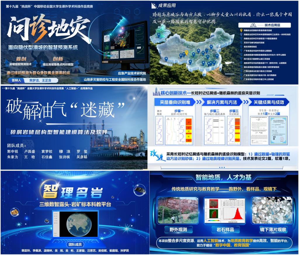 公司充分发挥地学学科优势,推动“学科优势”与“赛道需求”双向奔赴。主体赛项目“问诊地灾”直面隐伏型滑坡预测难题,服务“一带一路”国家地质灾害预警;“人工智能+”项目紧密结合油气勘探与地质教学,实现环境保护、科普教育与科研创新的有机融合。在“揭榜挂帅”赛道中,团队精准对接企业需求,将理论知识转化为解决国家能源痛点的实战方案,彰显地学学子的使命担当。