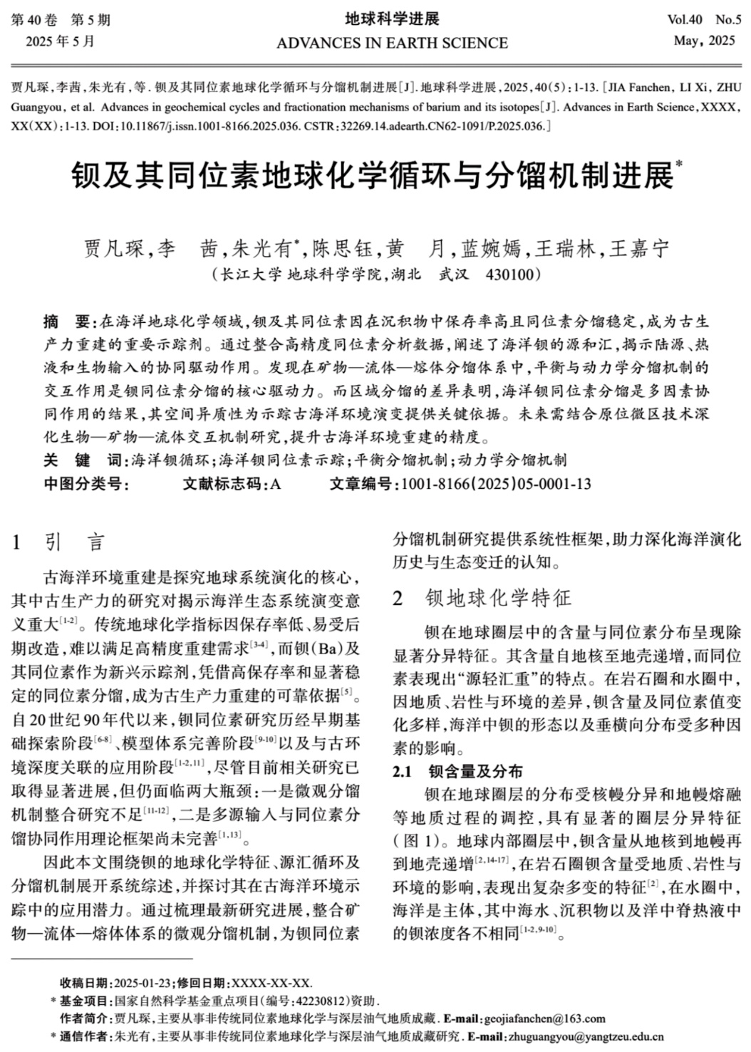 (通讯员 蓝婉嫣)近日,伟德国际1949官网21级本科生(现在读大四)贾凡琛在核心期刊《地球科学进展》上发表了题为《钡及其同位素地球化学循环与分馏机制进展》的论文(图1,共13页)。全部作者均来自伟德国际1949官网师生,本科生贾凡琛为论文第一作者,其导师朱光有教授为通讯作者。论文分析了钡(Ba)同位素在地球科学中的研究进展与面临的挑战,重点讨论了钡同位素的地球化学性质、储库与循环、分馏机理及古生力指示方面的应用。