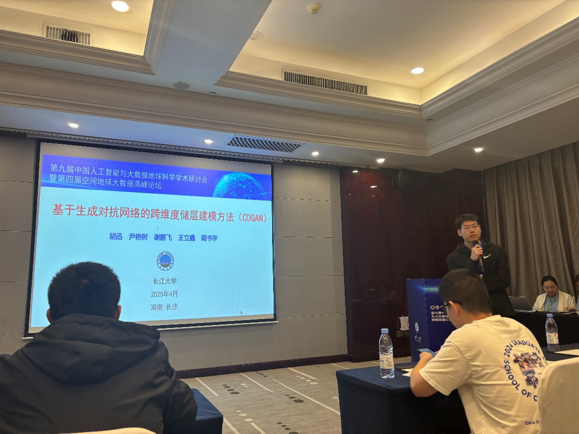 在专题十二分会场,由侯卫生、尹艳树、王功文等专家共同召集的“地质结构智能三维重建”专题研讨会吸引来自8所高校及科研单位的15个学术报告,围绕“地质结构智能三维重建”前沿方向展开了深入研讨。其中,公司胡迅博士后以《基于生成对抗网络的跨维度储层建模方法》为题进行口头汇报,该方法架起了传统二维储层构型解剖与三维储层地质建模之间的桥梁,不仅为构建地质大模型提供了技术支撑,也为提升油藏采收率提供高质量的地质模型保障。现场讨论氛围热烈,专家学者们围绕智能三维重建展开了深入交流,深化了对前沿技术的理解,更为地质信息智能化发展提供了宝贵的参考意见。