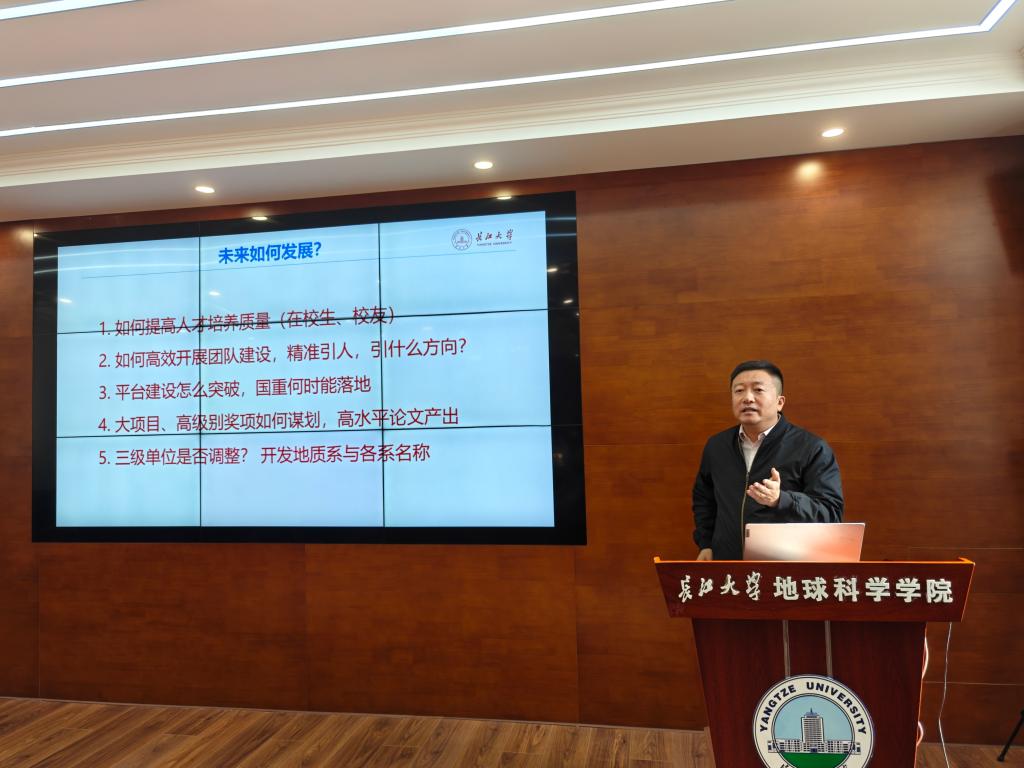 最后,经理朱光有对研讨会进行了总结,他表示地质资源与地质工程学科是学校的传统优势学科,我们必须正视自身存在的短板和问题,扬优势,强特色,千方百计把地质资源与地质工程团队建设好,传承好,发展好。当前,学校双一流建设正处于攻坚期,工作十分繁重,任务成倍增加,要求全院老师要勇立潮头,开足马力,干出业绩,从中实现自己的人生理想。朱光有强调,地质资源与地质工程学科的进位提升是目前头等大事,老师们要主动出访争取项目成果,抓住发展窗口,昼夜兼程,力争干出大业绩。各系领导班子、团队负责人,要提升管理能力和质量,多关心青年人才,让他们尽快融入大团队,发表大论文,干出地科学科发展速度。