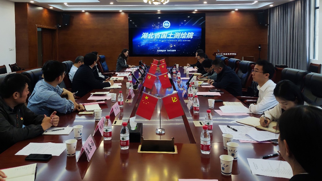 活动最后,公司与湖北省国土测绘院就党建与业务深度融合开展研讨交流。地信系教师张方利简要介绍了地信系教工党支部的党建情况,公司党委书记杨全辉介绍了公司党建引领推动事业高质量发展情况,表示党建工作必须与业务深度融合发展。湖北省国土测绘院副经理熊中招介绍了湖北省国土测绘院的党建情况,表示将以此次活动为契机,深化与地科学院在人才培养与项目攻关方面的合作,努力实现双赢。
