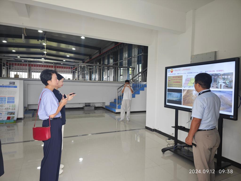 胡光明教授向专家介绍了具有鲜明特色的“沉积模拟实验室”。从实验室的建设发展历程、功能定位等方面做了详细讲解。据悉,该实验室可以模拟不同地质背景下砂体的沉积规律,为石油天然气的勘探开发提供模型验证支撑,同时还能对滑坡、泥石流等地质灾害进行模拟。
