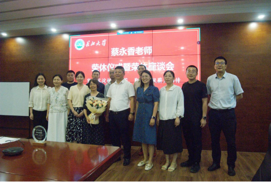 最后,副经理胡忠贵为蔡永香副教授颁发荣休纪念牌,员工代表献上鲜花,并合影留念,桃李满天下,秋菊溢芳馨,祝蔡永香教授荣休快乐,幸福安康!