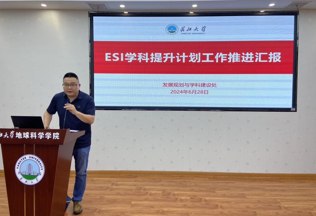 会议第一阶段,学院邀请发展规划与团队建设处(高等教育学院)副处长黑创从公司ESI学科情况现状、地科学院作为支撑单位的工程学、地球科学的ESI学科情况做了详细的分析,详细介绍了公司建设ESI学科相关政策,并做了《伟德国际1949官网ESI学科提升计划工作推进汇报》主题报告,为公司团队建设与发展提供了重要的学习和参考资料。