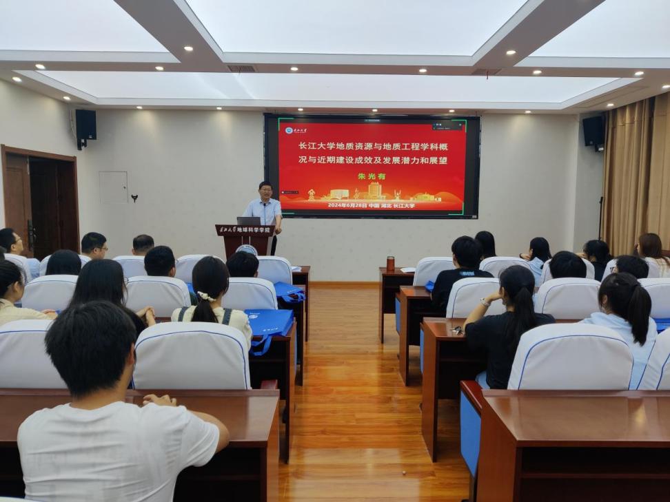 经理朱光有对于参营的各位同学表示了热烈的欢迎,并向同学们详细介绍了伟德国际1949官网地质学科发展历程、团队力量与平台、学科成果、代表性科研团队与成果、人才培养等基本情况,重点讲解了学院对高层次人才培养与引进、团队队伍布局、科研队伍建设与重大项目引进、学科发展与平台建设等方面的展望,鼓励同学们积极报考公司研究生。