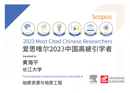 近日,备受国内外众多媒体和学者高度关注瞩目的爱思唯尔(Elsevier) 2023“中国高被引学者”(Highly Cited Chinese Researchers) 榜单发布,公司特聘专家黄海平教授在地质资源与地质工程学科上榜。