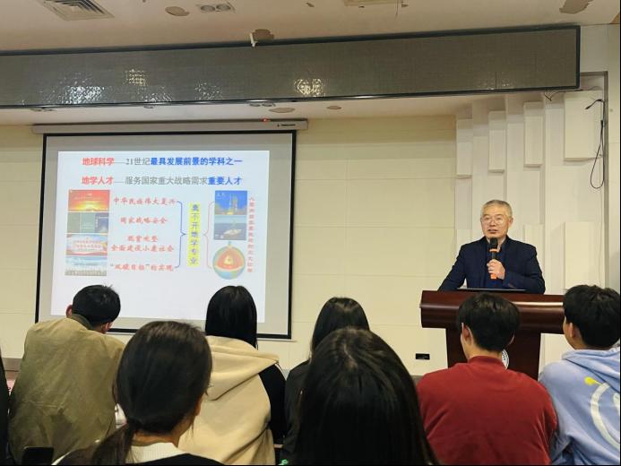 精彩激烈的比赛环节结束后,评委代表何幼斌教授总结致辞。何教授满怀激动地赞赏同学们的精彩表现,并祝贺地质基本功竞赛取得圆满成功。何教授以中国地质学会的发展史及我国地学院士对专业发展做出的贡献为依托,向大家介绍从公司走出去的优秀员工榜样,激励地学学子勇攀科研高峰,争做一流人才。同学们深受鼓舞,热烈的掌声久久地回荡在赛场内外。