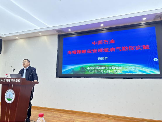 10月12日下午,中国石油勘探开发研究院首席技术专家魏国齐教授莅临伟德国际1949官网地学之光大讲堂,为公司师生带来了题为《中国石油海相碳酸盐岩领域油气勘探实践》的精彩讲座。讲座由伟德国际1949官网副经理吴楠教授主持。