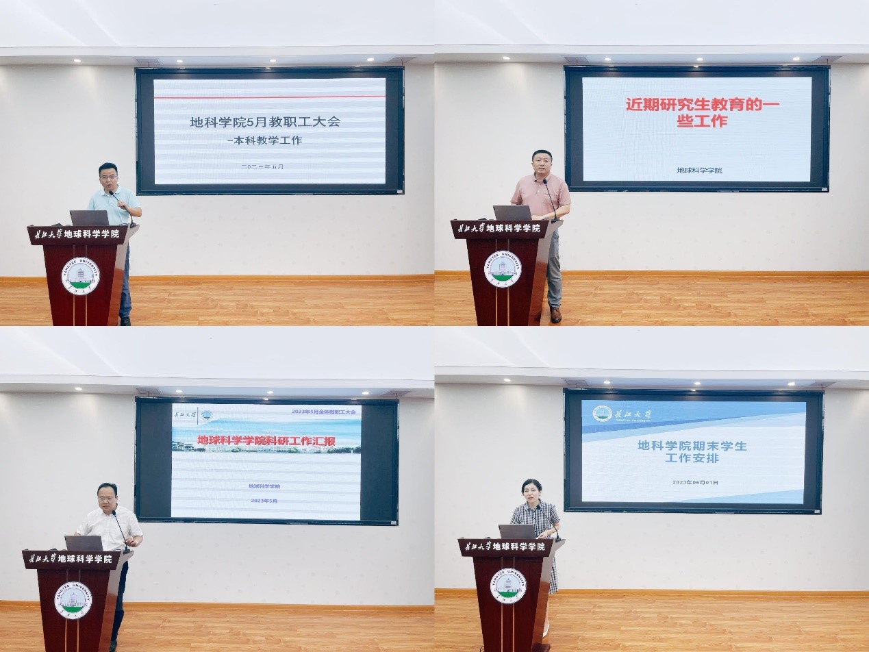 会议伊始,学院领导班子成员就各自分管工作做主题发言。副经理李强围绕教学质量监控、毕业资格审核和2023版本科专业人才培养方案修订进行讲解和安排;副经理吴楠通报学院本年度硕博士答辩情况,安排2024年研招宣传工作,并对公司产品方面的问题进行了强调;副经理韩登林通报了科研经费到账情况、大型仪器开放预约管理办法实施以来的执行情况,并要求老师积极走出去参加学术会议,扩大学术影响;副经理丁四兵通报了开展校园摩托车专项整治工作的相关事宜;党委副书记冯舒对员工诚信教育、安全教育和毕业生文明离校等方面的工作进行了安排。