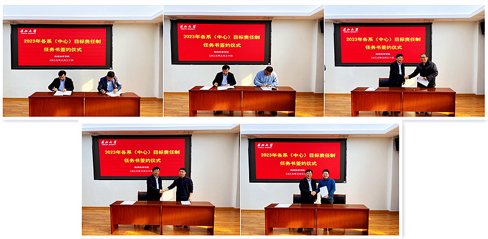 为全面落实学校“十四五”发展规划目标任务和年度目标任务,充分调动学院教职工的工作积极性、主动性和创造性,压实责任,根据学院2023年度工作要点和绩效分配方案,各系(中心)与学院签订了2023年度目标管理责任制工作目标任务书,党委书记杨全辉主持签约仪式。他要求各系(中心)切实做到工作项目化、项目清单化、清单责任化,明确时间节点、责任落实到人,确保每项工作、每项任务、每项指标有人负责、有序推进,号召全院教职工积极行动起来,用善作善成的智慧推动目标任务有效达成,进一步汇聚推动学院高质量发展的磅礴力量。