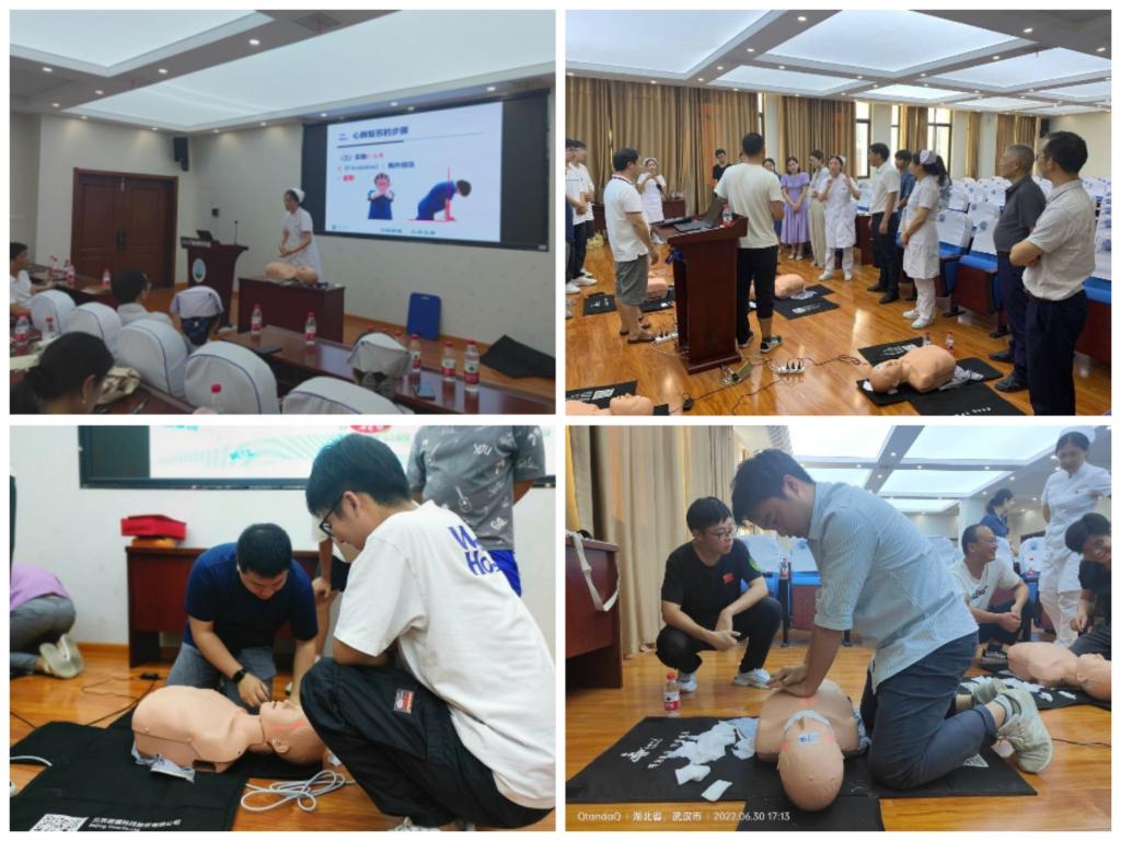 会后,结合公司党员干部下基层察民情解民忧暖民心实践活动方案,学院邀请了医学部4位老师为公司师生进行“医心向党,健康长大”急救技能培训。医学部行政副部长王真代表医学部表示,医学部将利用专业知识无偿为学校师生服务。随后,邓文芳老师结合实例系统地讲解了心肺复苏的使用背景以及抢救流程,并利用模拟人,给在座师生做了标准的现场示范。最后,医学部护理系龚爱萍、邓文芳、齐桂老师组织公司师生进行分组实操练习和现场考核。此次培训现场座无虚席,师生参与热情高,大家纷纷表示获益良多,且充分意识到掌握急救技能的重要性和医护人员的不易。