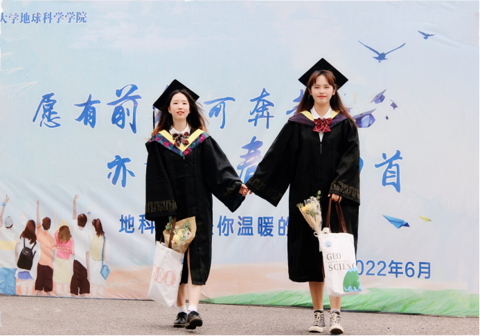伴随着《凤凰花开》《再见》等熟悉的旋律,一张张充满回忆的照片出现在大屏幕上,班会、实习、班级聚会……,瞬间将大家的思绪拉回到四年的老员工活中。同时,四名毕业生从四个角落走出,倾情献唱,并为每位同学送上精心准备的花束,将现场气氛推向高潮,师生们手中挥舞的花束在会场内汇成一片花海。