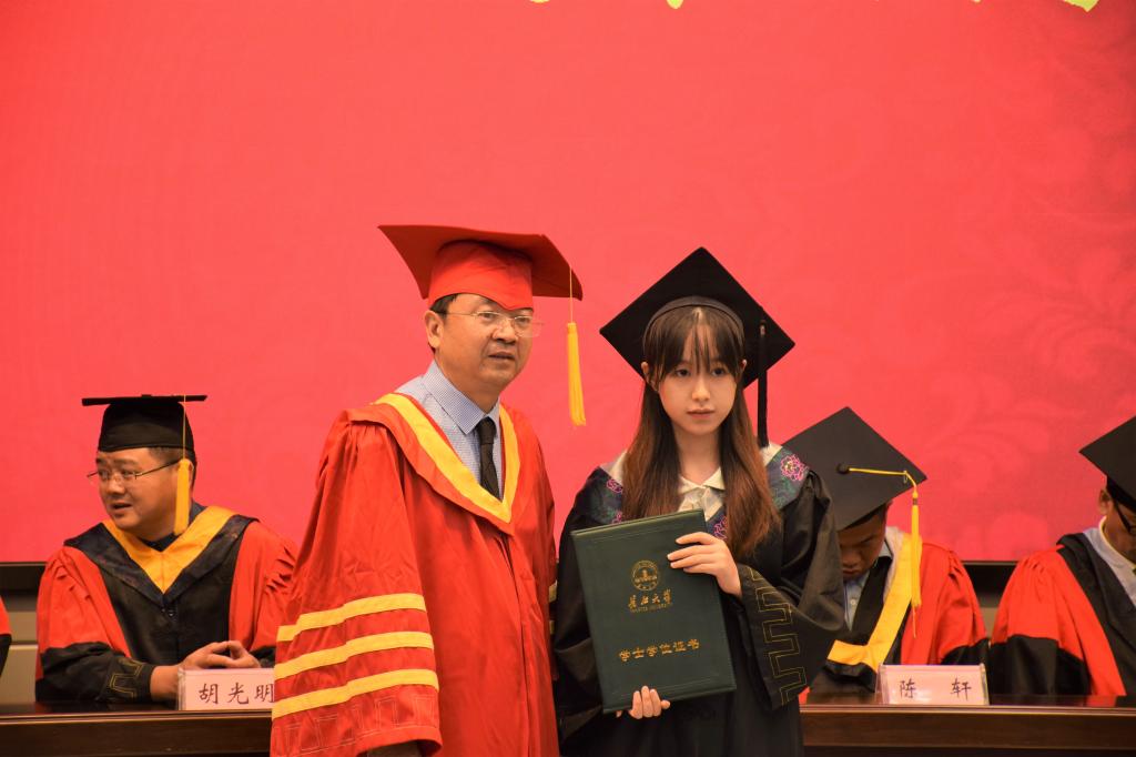 沉甸甸的学位证书饱含了同学们几年满满的收获,他们手握着学位证书面带微笑,“咔嚓”一声,幸福和美满在这一刻定格,短暂的大学时光由此画上了句号。即将离开母校的学子们感慨万千,回到座位时仍兴奋不已,不舍离开。