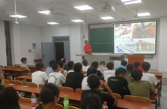 陈老师围绕学风建设及员工自我发展等问题,首先指出大学本科更偏重于能力的培养。随后,系主任陈轩老师做专业介绍,他以“石油地质人的传承与信念”这一主题展开,从“资工专业主要研究内容,资工专业怎么样,资工专业的人才培养体系”三个方面热情幽默地讲解了公司资源勘查工程专业的悠久历史和雄厚的团队力量,详细介绍了专业的发展前景,让同学们对资工专业有了更进一步的了解。为说明“导师组”活动的作用及意义,他用水桶和水杯的关系引出“亦师亦友”的理念,并表达了对全体新同学的祝福与期待。新生们纷纷表示要传承良好学风,再创辉煌历史。
