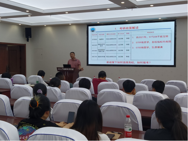 接着,吴楠副经理就公司研究生报考及奖助学金政策进行了详细解读,并给同学们详细分析了近三年公司报考研究生情况,对新政策下如何选择高校,如何报考给出宝贵的建议。