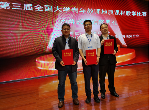 据悉,全国大学青年教师地质课程教学比赛截止目前已举办了3届,每2年举办一次,公司地科学院青年教师屡次在此项大赛上融创佳绩,历史辉煌,在第一届比赛中,地科学院青年教师胡忠贵荣获一等奖、吴悠荣获二等奖;第二届比赛中,地科学院青年教师高达老师荣获一等奖及特别奖,魏薇老师荣获二等奖。
