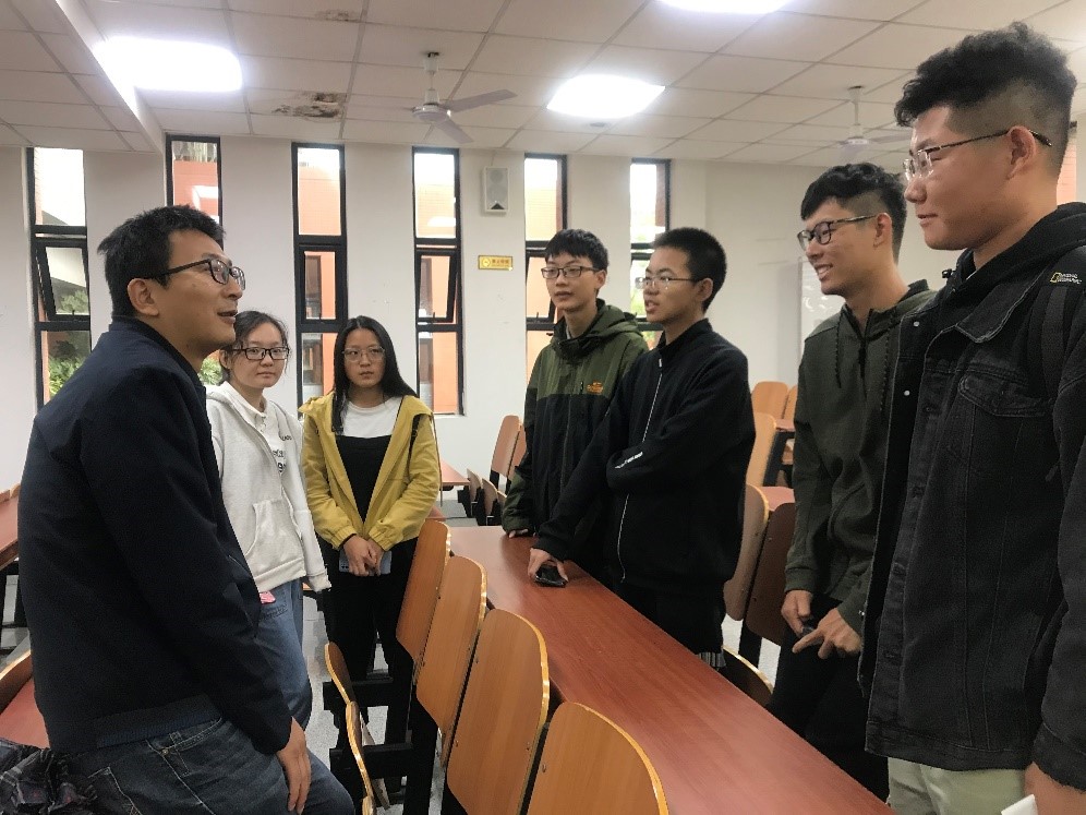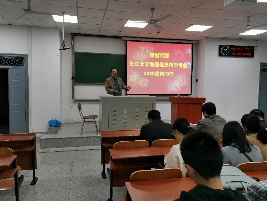 地理信息科学专业由李功权副教授主讲。李功权老师从什么是GIS、如何学习GIS、GIS专业特色以及GIS专业的就业前景四个方面为同学们进行了介绍。汤军老师作为导师代表与同学们重点分享了GIS的专业前景,并鼓励大家努力学习专业知识,用实际行动为祖国建设贡献力量。