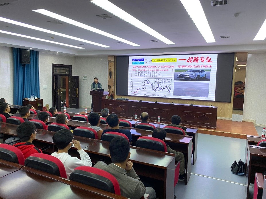 在资源勘查工程专业介绍与导师组活动中,陈轩副教授首先从“资工专业主要研究内容、资工专业怎么样、资工专业的人才培养体系”三个方面向同学们做介绍,随后用“亦师亦友”引出“导师组”活动的作用及意义。最后,张昌明教授用个人成长经历和学科优秀员工的事迹,勉励同学们要勤奋钻研,争取成为优秀的石油地质工作者。