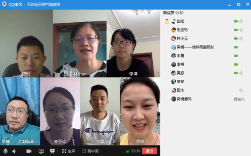 (通讯员 饶松)7月11日下午,公司“石油与天然气地质学”课程组利用QQ视频会议组织召开了课程建设专题研讨会,《石油与天然气地质学》、《油气地球化学》和《石油地质专业英语》全体任课教师林小云、王振奇、刘建、吴楠、饶松、丰勇、吴悠、朱亚玲、李祺和殷杰共10人参加了研讨会,会议由课程组负责人林小云教授主持。