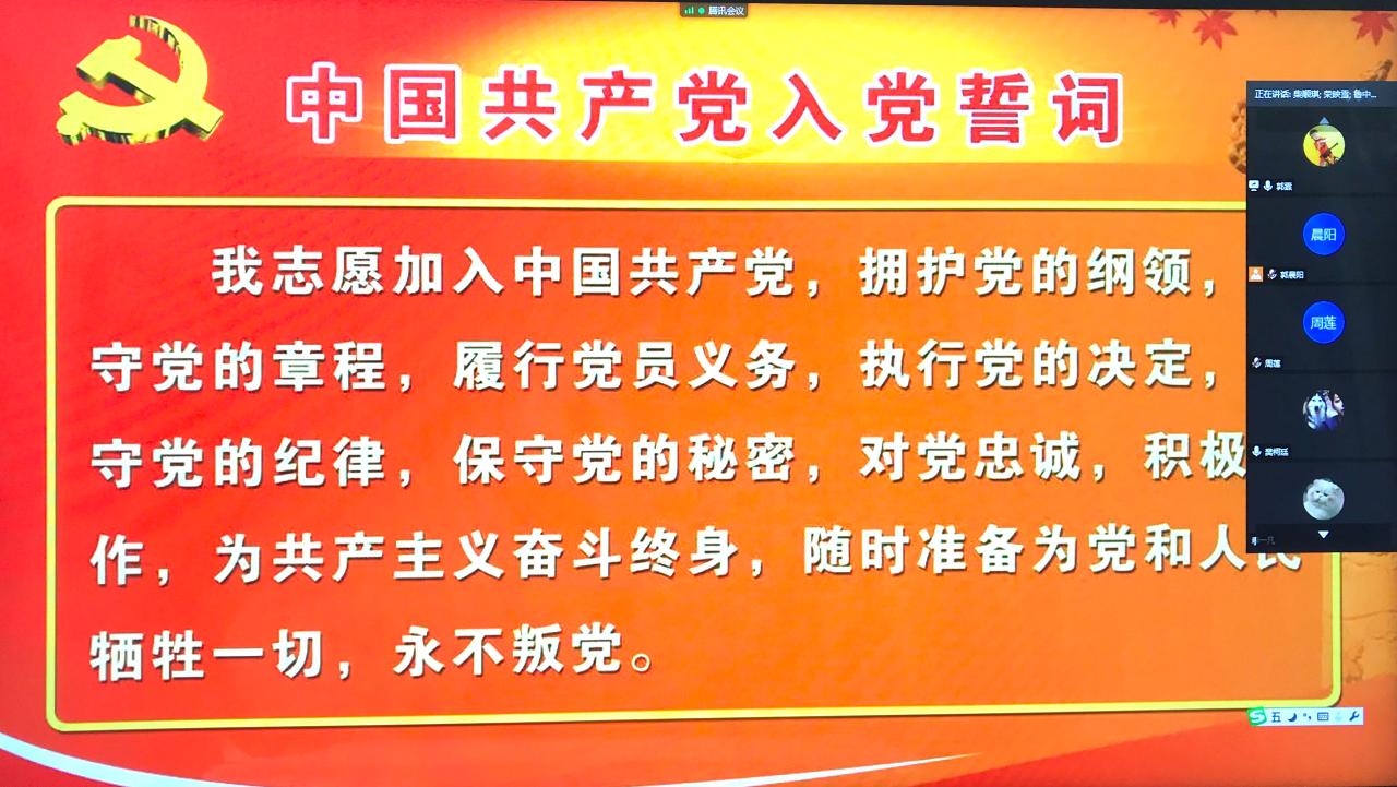 “我志愿加入中国共产党……随时准备为党和人民牺牲一切,永不叛党。”最后,全体党员重温入党誓词。