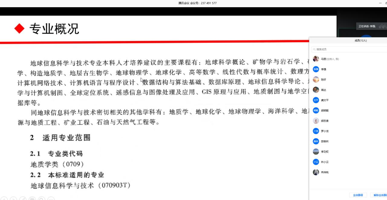李强副经理首先对地球信息科学与技术新专业概况进行了介绍,接着从培养目标、专业建设、就业前景等方面介绍了中山大学、浙江大学、中国海洋大学、电子科技大学、中国地质大学等目前国内几所高校开设该专业的情况,然后与会委员就专业建设必要性和专业建设内容、特色和定位几个方面展开讨论。