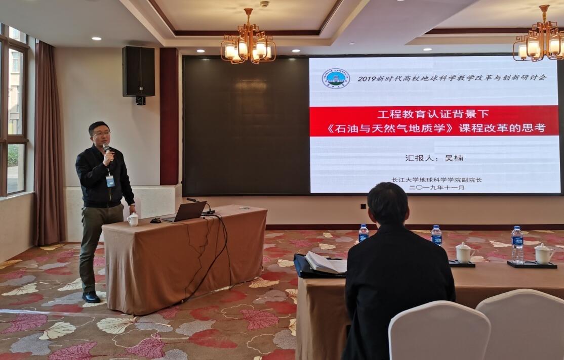 在广泛听取大会各项报告的同时,伟德国际1949官网吴楠副经理和李功权副教授、地球物理与石油资源学院毛宁波教授、分别就工程教育认证背景下“石油与天然气地质学”课程改革的思考、综合地质实习虚拟仿真平台的构建、“地震勘探原理”金课建设与思考做了专题的报告,并同与会专家教授进行进一步交流与沟通。