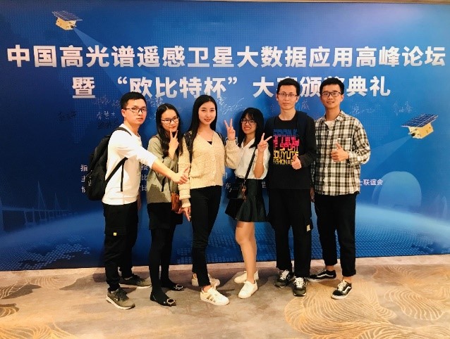 (通讯员 刘威)2019年11月22日,伟德国际1949官网研究生付含聪、李彩霞、刘威、杨欢、许诺、曹国华一行六人赴珠海参加中国高光谱遥感卫星大数据应用高峰论坛暨“欧比特杯”高光谱遥感影像智能处理行业应用大赛颁奖典礼。本次大赛中,公司获得一等奖一项(付含聪、杨欢、许诺),三等奖两项(刘威、甘艺垚、高静文;李彩霞、曹国华)。