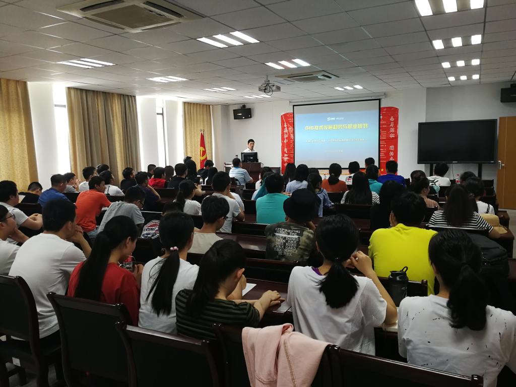 (通讯员 杨俊)6月24日下午3时,中地数码集团李兆刚博士应邀来校,为公司地信专业同学带来题为“GIS发展趋势与职业发展规划”的主题讲座,党委副书记任倩老师、地信系主任何贞铭老师、学工办王宁老师参加本次讲座。