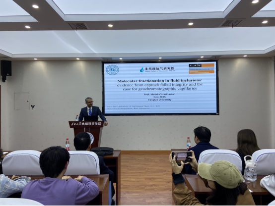 (通讯员 胡景怡)11月11日,受2025年湖北省教育厅世界著名科学家来鄂讲学计划项目资助,德国基尔大学Mehdi Ostadhassan教授做客伟德国际1949官网“地学之光”第395讲学术论坛,在石油科技大楼C301会议室为学院师生作题为“Molecular Fractionation in Fluid Inclusions: Evidence from Caprock Failed Integrity and the Case for Geochromatographic Capillaries”的学术报告,伟德国际1949官网经理朱光有教授等100余位师生参加了报告会。报告会由伟德国际1949官网特任副教授梁志凯主持。