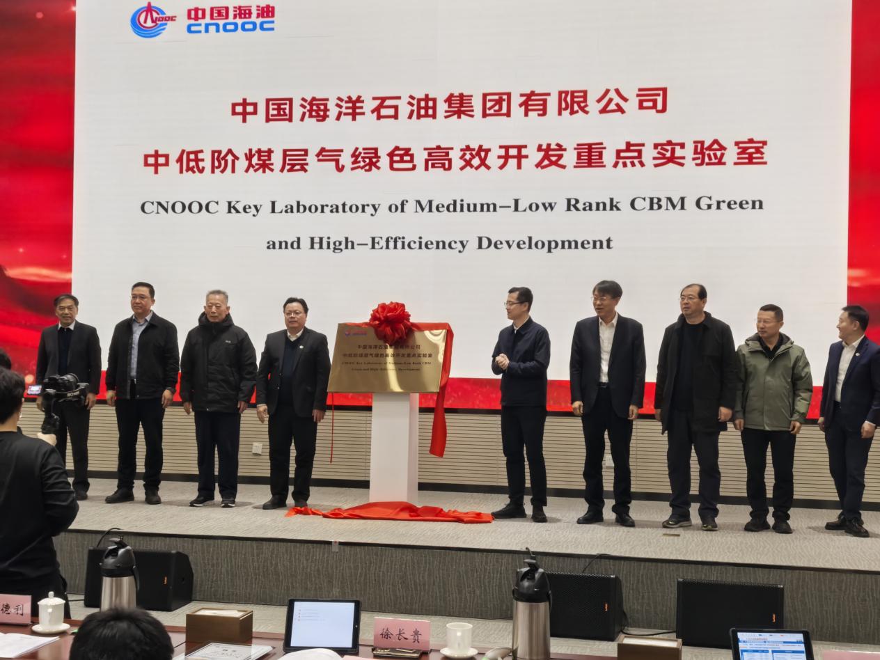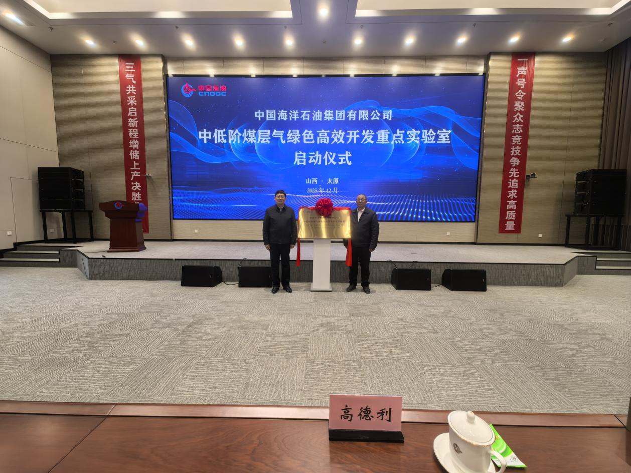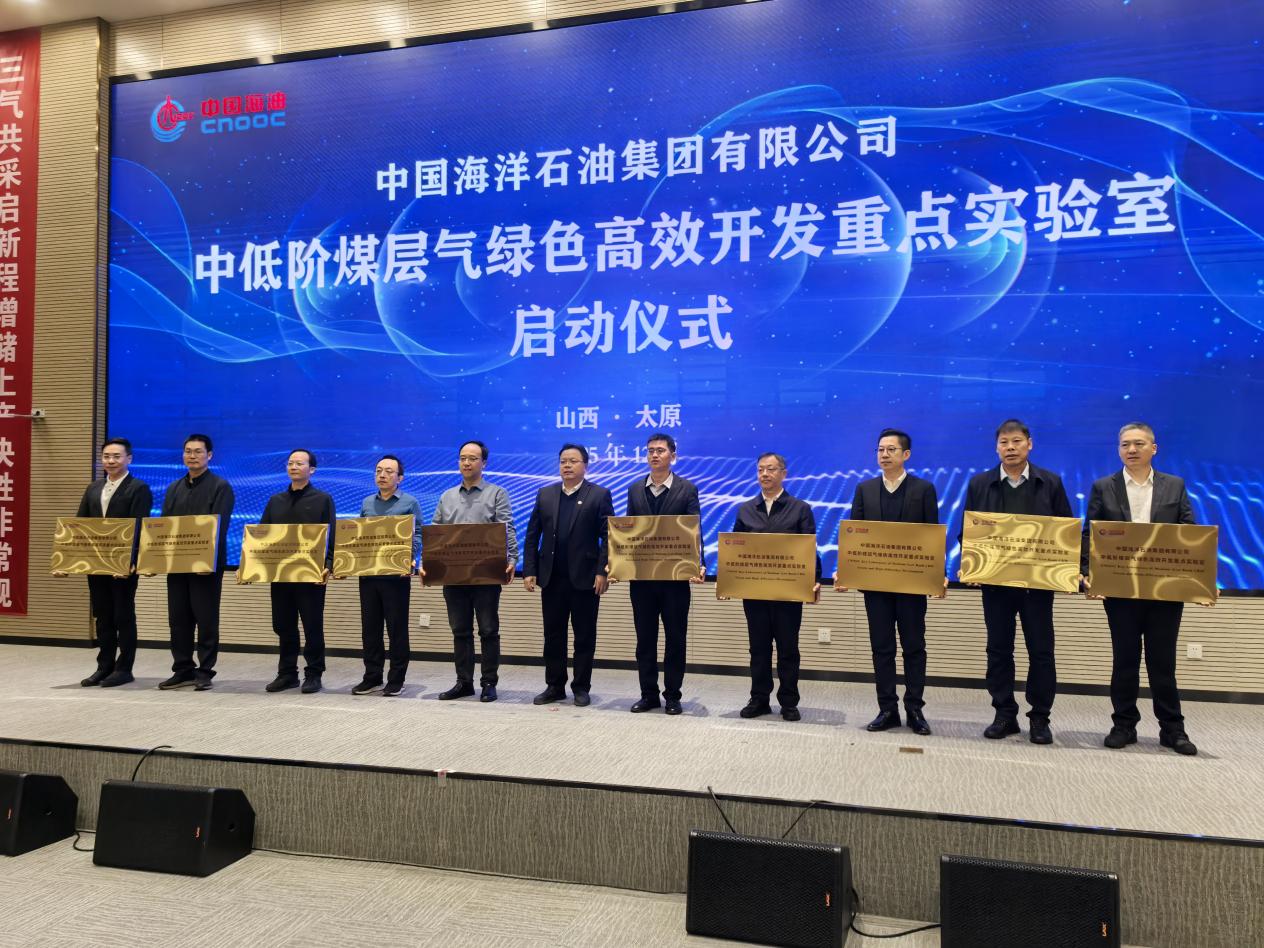 (通讯员 李功权)2025年12月4日,中国海洋石油集团有限公司“中低阶煤层气绿色高效开发重点实验室”启动大会在山西太原召开,中国海洋石油集团有限公司首席科学家、总地质师徐长贵、陕西省科技厅厅长陈望远、中国科学院院士高德利等领导专家出席了重点实验室揭牌仪式。伟德国际1949官网作为联合建设单位,赵辉副董事长带队,平台与实验室管理处张菲菲处长、伟德国际1949官网朱光有经理、李功权副经理参加了本次会议。