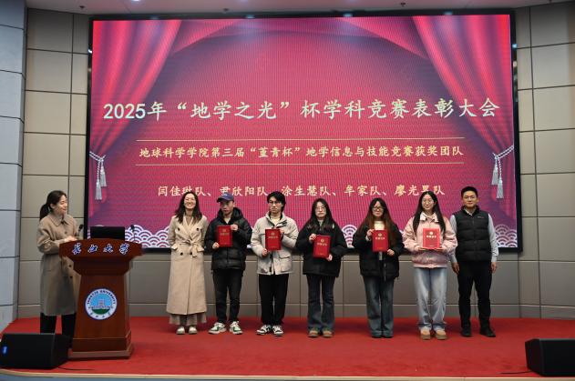 (通讯员 王雨鑫 潘宇飞 周文豪/摄)12月31日下午,伟德国际1949官网2025年“地学之光”杯学科竞赛表彰大会在学术报告厅举行。伟德国际1949官网经理朱光有、公司党委书记杨全辉、学院副经理胡忠贵、教授代表何幼斌、学院各系(中心)主任、支部书记、师生代表及获奖团队齐聚一堂,共同见证过去一年学院在各类高水平学科竞赛中取得的丰硕成果。大会由公司党委副书记冯舒主持。