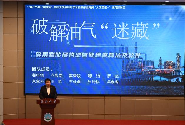 “挑战杯”国赛获奖团队代表韩亚玲、黄迟君、陈思钰、王芷含现场展示了国赛风采。《问诊地灾》团队作为本年度全校唯一进入主赛道现场的队伍,团队代表王芷含,以“攀登”为题,真诚分享了团队备赛到获奖的心路历程,当他坚定的说出:“没关系,试一试,总能找到办法”时,现场师生响起了热烈的掌声。党宇烁同学感慨道:“同学们展现出的专业能力和拼搏精神让我倍感振奋,我将以他们为标杆,不断锤炼自己。”