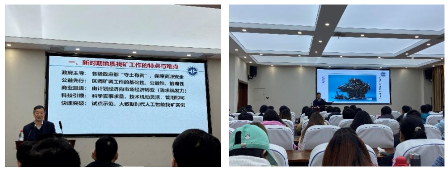 本次报告紧扣《中国矿产地质志》与新一轮找矿行动这一主题,分为“找矿报国,时不我待”和“全位成矿,缺位找矿”两个部分展开。首先介绍了中国地质科学院矿产资源研究所灿烂的历史和伟大的业绩,引来师生阵阵惊叹。