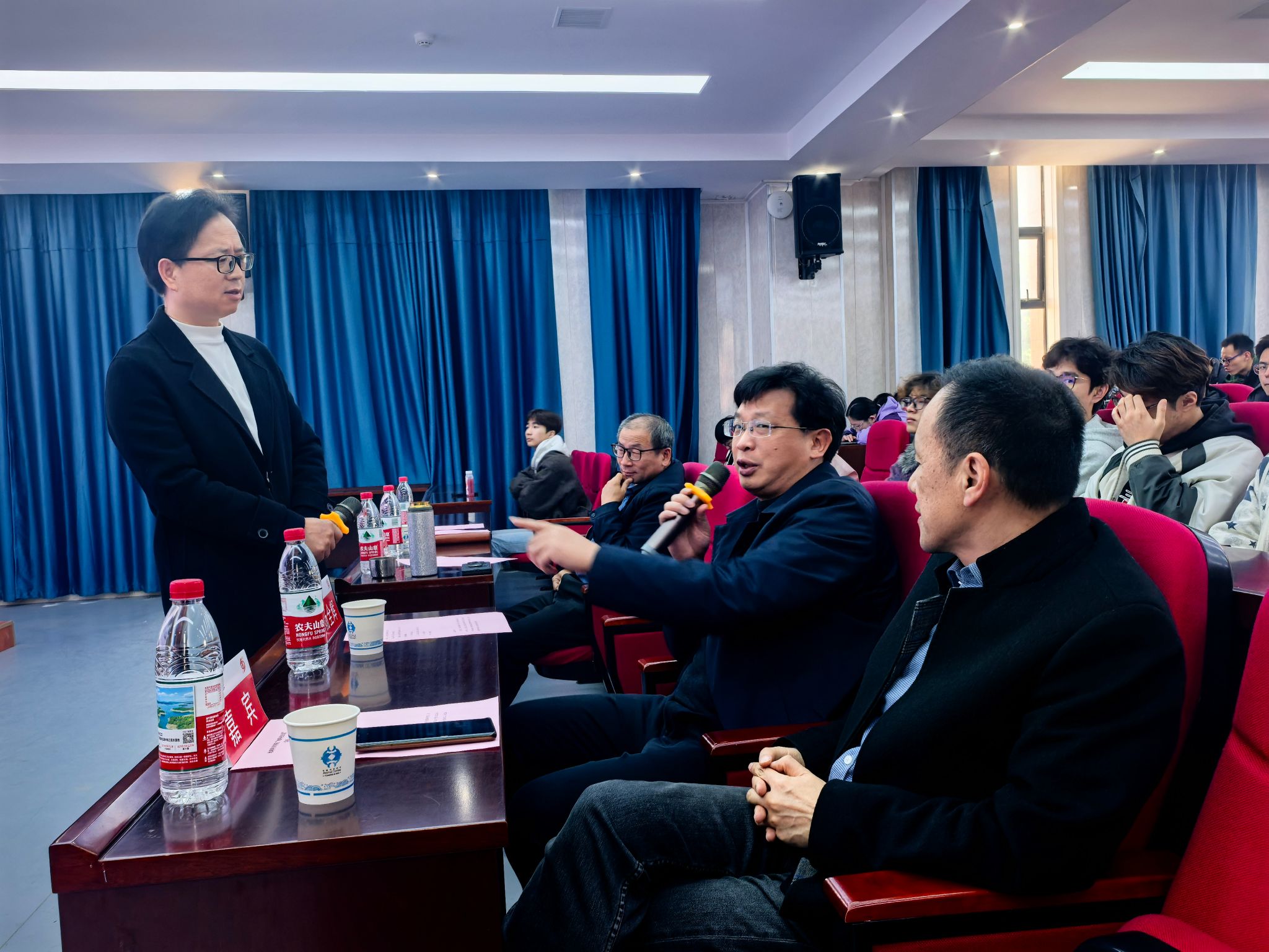 分享过程中,现场气氛热烈,互动频频。杨全辉书记与李少华教授率先融入互动讨论,围绕“运动的多元属性”展开即兴交流。二人以篮球运动为切入点,生动探讨了“即兴运动”与“受限运动”的差异。这场探讨瞬间点燃现场气氛,为后续分享铺垫了轻松且深刻的交流基调。
