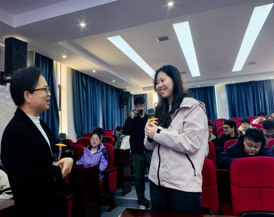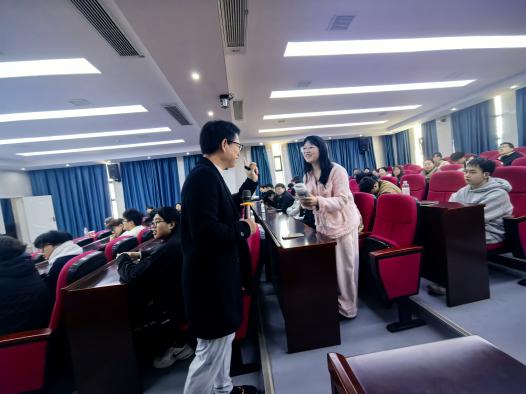 在互动提问环节,同学们踊跃发言,将现场氛围推向高潮。地质(工程)22401詹书博结合学习实际提问:“师兄,请问该如何平衡学习与运动的时间?”吴师兄结合自身多年工作与学习经历耐心解答:“很多同学觉得运动需要腾出大段完整时间,其实完全不必。我们可以摒弃这种固有认知,把运动拆解到日常碎片里——比如课间起身做3分钟拉伸、午休后绕操场快走10分钟、学习间隙做几组原地跳跃或开合跳,哪怕是通勤路上多走几步路,都能起到激活身体、放松大脑的作用。这类轻量运动不会占用核心学习时间,反而能快速缓解久坐疲劳,让注意力更集中,真正实现‘以动促学、劳逸结合’。长期坚持下来,你会发现运动不仅不是学习的阻碍,反而能成为提升效率的助力。”
