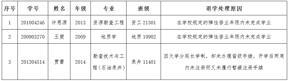根据《普通高等学校员工管理规定》(教育部令第41号)第三十条和《伟德国际1949官网普通本科生学籍管理办法》(长大校发〔2017〕134号)第五十一条规定,对达到退学处理条件但拒绝办理退学手续或多种方式均无法联系到本人的本科生,现以公告方式送达拟退学处理告知书,公告时间7个工作日,于2021年5月28日结束公告。在公告期内,员工可向学院提出申辩和书面陈述并署真实姓名、联系方式,邮寄或直接送到伟德国际1949官网教学办;未在规定时间内提交申辩和书面陈述者,视为放弃陈述、申辩的权利。公告期满后,学院将按学校规定办理。