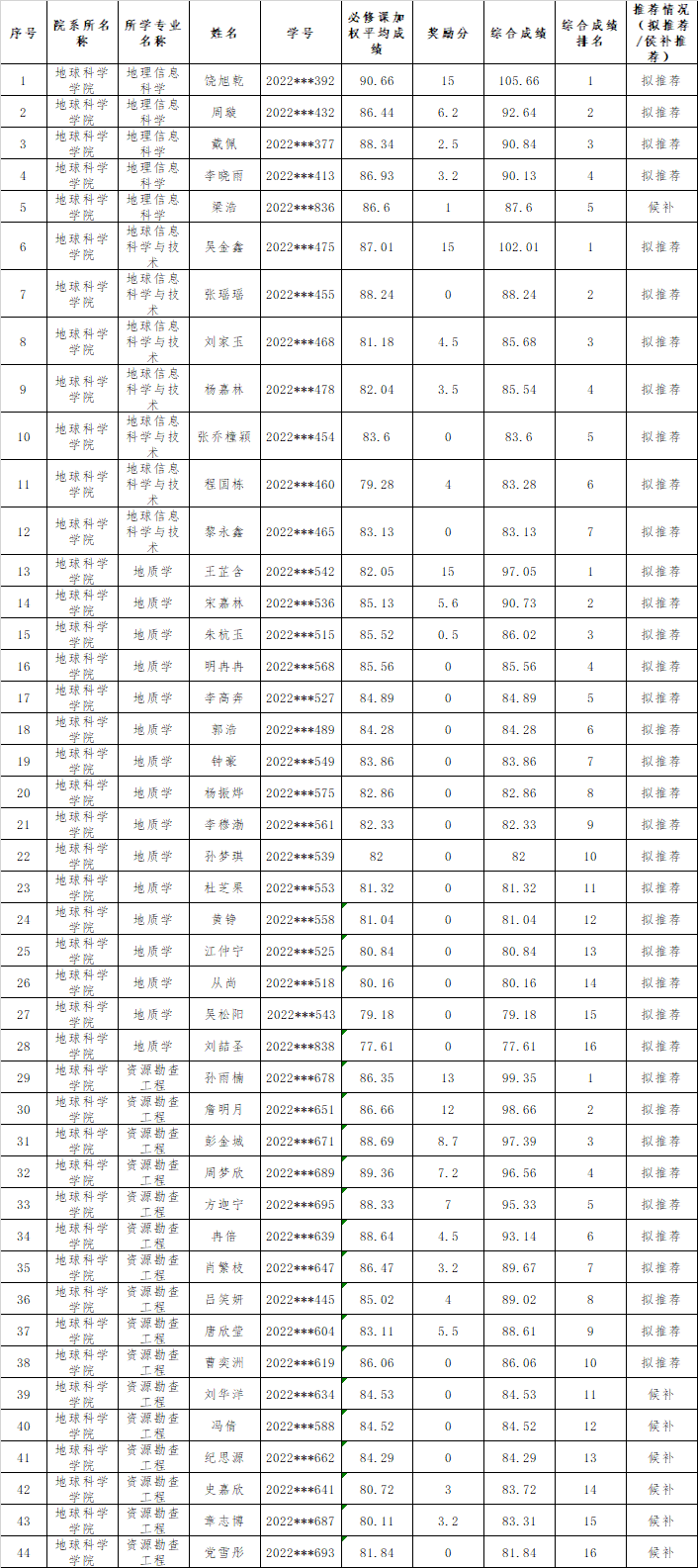 根据《伟德国际1949官网推荐优秀应届本科毕业生免试攻读硕士学位研究生管理办法》(长大校发〔2025〕9号)、“关于做好推荐 2026 届优秀本科毕业生免试攻读硕士学位研究生工作的通知”(https://bks.yangtzeu.edu.cn/info/1042/3856.htm)、《关于推荐2026届优秀本科毕业生免试攻读硕士学位研究生名额分配的通知》和《伟德国际1949官网推荐2026届优秀本科毕业生免试攻读硕士学位研究生推免名额分配方案》要求,结合学院实际,经员工本人申请,学校相关部门和学院审核,学院推免生遴选工作小组审议通过,现将公司拟推荐2026届优秀本科毕业生免试攻读硕士学位研究生分专业按推免生名额的120%(其中20%为候补人员)进行公示。在公示期间,若拟推荐员工不符合条件或放弃推免资格,则依据候补人选的排名由候补人选依次递补,如没有递补员工的专业有员工不符合条件或放弃推免资格,则按本院推免名额分配方案要求进行递补。公示时间:2025年9月13日至2025年9月15日。