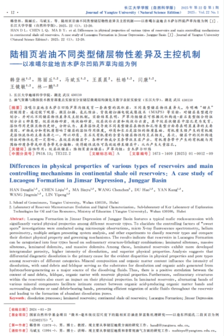 地科学院研究生陈丽丘在伟德国际1949官网学报(自然科学版)上发表题为“陆相页岩油不同类型储集层物性差异及主控机制——以准噶尔盆地吉木萨尔凹陷芦草沟组为例”的研究论文,其中伟德国际1949官网为论文第一署名单位,导师韩登林为第一作者,导师马斌玉为论文通讯作者。