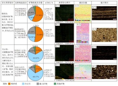 为明确甜点控制因素,通过镜下观察、微区扫描、氦孔隙法、MAPS等实验,对储层类型进行划分,并对比不同储集层物性差异特征及主控机制。实验结果表明,芦草沟组储层可根据沉积构造-岩石类型组合特征划分出四种类型:纹层状粉砂岩、块状粉砂岩、纹层状白云岩和块状白云岩。其中纹层状储层中溶孔更为发育,溶蚀作用更强且物性更好。分析认为,差异溶蚀是导致不同类型储层在物性和孔隙类型方面存在明显差异的主要原因,矿物成分和有机质影响了储层的溶蚀作用强度。砂屑和长石是溶蚀的物质基础,有机质生烃产生的有机酸是溶蚀流体的主要来源之一,所以砂屑、长石及有机质的含量与储层物性均呈正相关。其次,储层中的沉积构造特征对物性也有一定影响,在纹层状储层中,各种矿物成分呈条带状互层产出,有机质条带中产生的有机酸与周围粉砂质条带或砂屑条带充分接触,使得酸性流体可高效运移至储层中,而产生大量溶蚀孔隙。