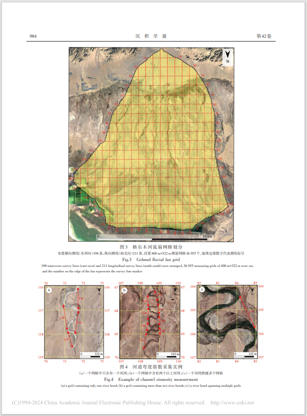 论文运用Google Earth、Global Mapper地理信息软件,按照等比例网格采集河道弯度指数数据,分析了分支河流体系河道弯度指数沿程的变化规律,建立了格尔木河流扇河型演变的沉积模式。