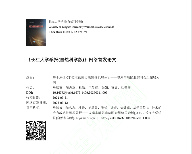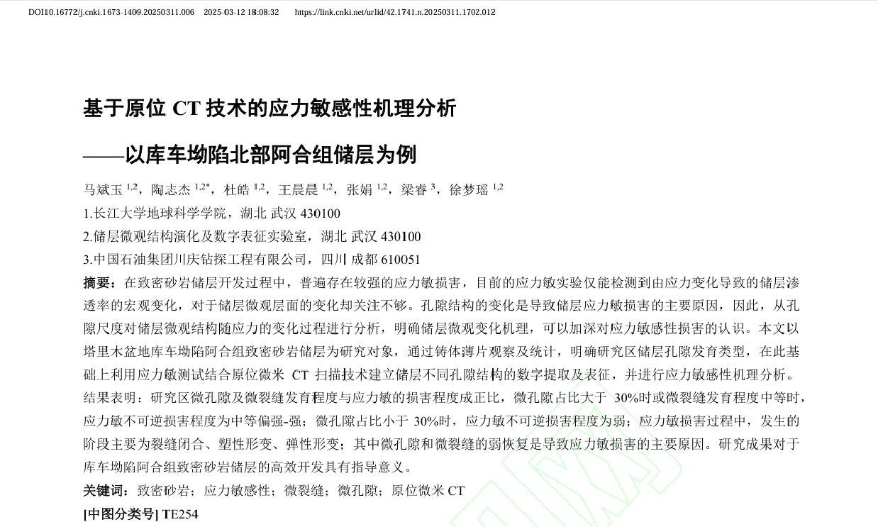 伟德国际1949官网地质学研究生陶志杰在《伟德国际1949官网学报(自然科学版)》上发表了题为“基于原位CT技术的应力敏感性机理分析——以库车坳陷北部阿合组储层为例”的研究论文。