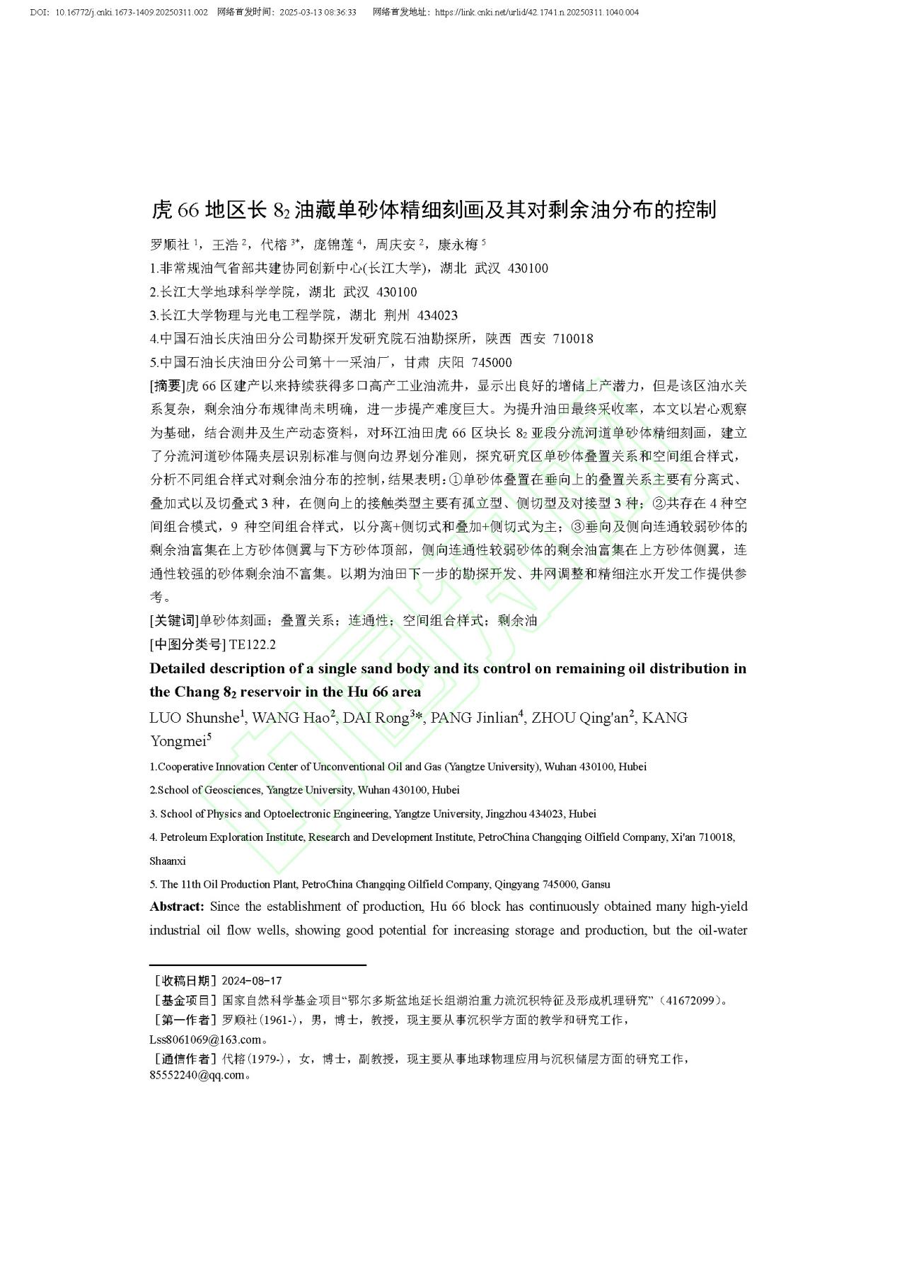 伟德国际1949官网硕士生王浩在期刊《伟德国际1949官网学报(自然科学版)》上发表了题为“虎66地区长82油藏单砂体精细刻画及其对剩余油分布”的研究论文。该研究在井网砂体解剖的基础上,对单砂体进行精细刻画,分析辫状河三角洲平原亚相背景下的河道砂体接触类型及砂体连通性、空间组合样式及其对剩余油分布的控制,以期为油田下一步的勘探开发、井网调整和精细注水开发工作提供参考。