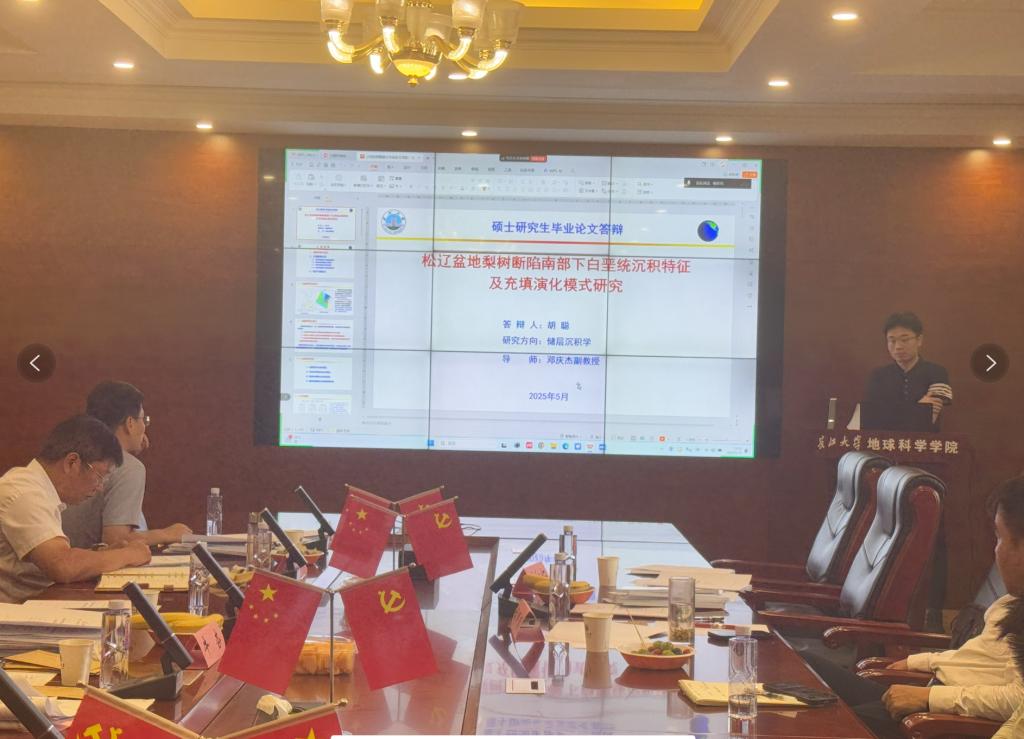 胡聪同学的学位论文题为《松辽盆地梨树断陷南部下白垩统沉积特征及充填演化模式研究》,在导师邓庆杰副教授的指导下,针对松辽盆地梨树断陷南部深层断陷期下白垩统层序地层、沉积体系及充填演化开展了研究,建立了该区深层断陷期层序地层格架,明确了断陷发育期沉积相类型与沉积相展布特征,总结了断陷期盆地沉积充填演化规律,剖析了断陷期沉积充填演化与烃源岩和储层分布的耦合关系,预测了该区油气藏类型及分布,研究成果可对该区深层天然气勘探开发提供理论指导。